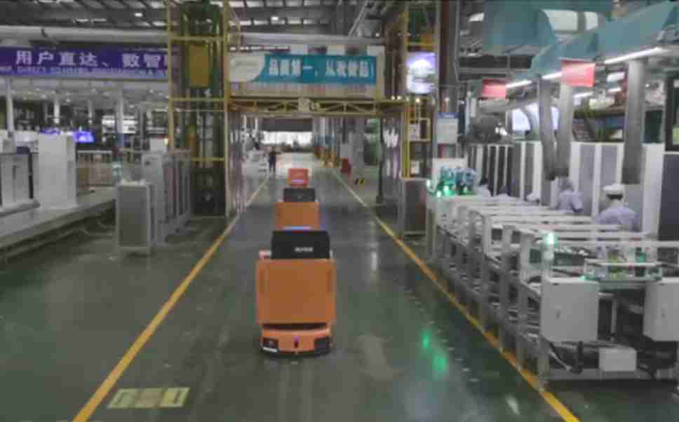 为车载冰箱物流配送打造的智能解决方案,,,包含产中物流通过潜伏举升AMR搬运至线边,,,,产后成品物流智能仓储,,,,流程包含产中物流智能齐套入库,,,,线边安灯叫料AMR智能配送至线边,,,成品入库、、、出库,,,通过无人堆高车机器人,,智能仓储管理替代人工作业管理,,,实现更高存储、、、、更高效率、、、、更具柔性化的解决方案。。。。